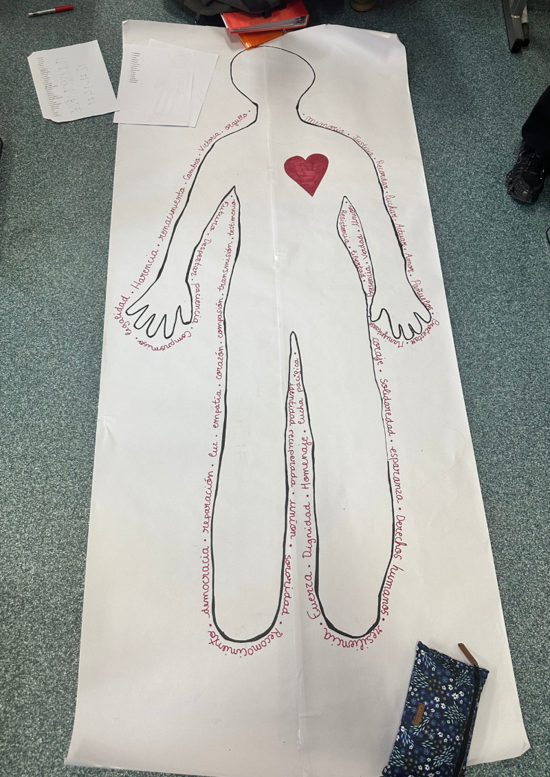 Al término de este encuentro, marcado por numerosas preguntas y una interacción rica en aprendizajes, una parte de los alumnos realizó un «Siluetazo», mientras que los demás diseñaron carteles con el objetivo de contextualizarlo y facilitar su comprensión.